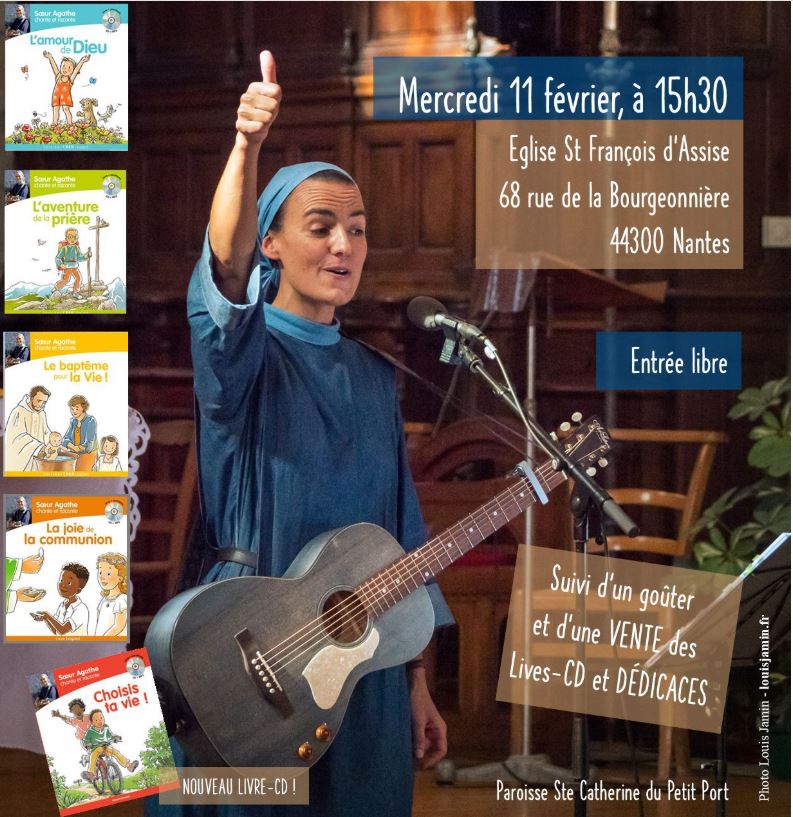 Concert familial en l’église St-François d’Assise, 68 rue de la Bourgeonnière, 44300, Nantes, suivi d’un goûter et d’une vente de livre-CD et dédicaces organisé par la paroisse Ste-Catherine du Petit-Port.