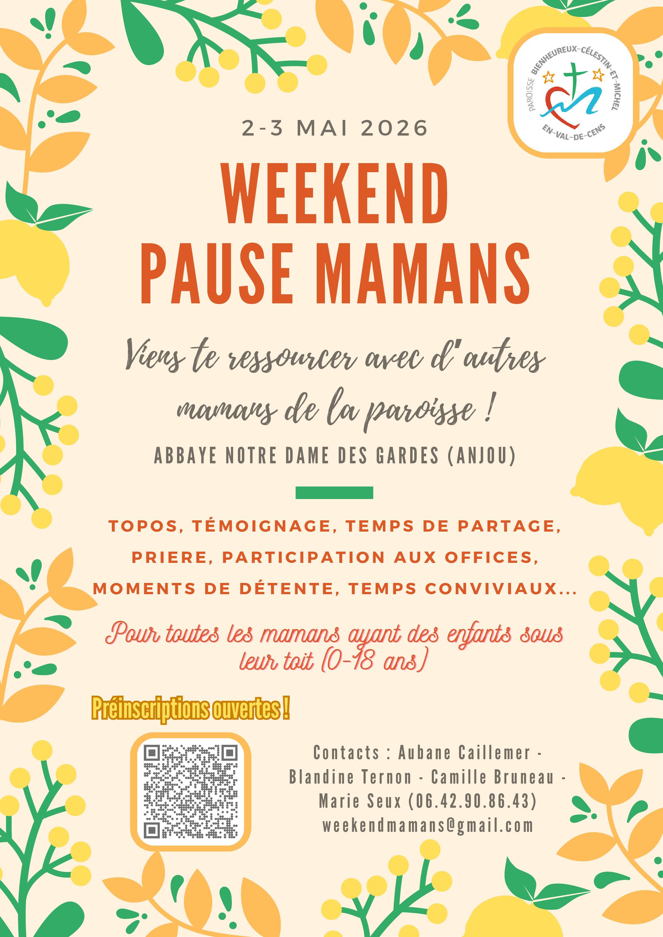 Un WE pour prendre du temps pour soi et avec Dieu, afin de s’extraire du quotidien est proposé aux mamans de la paroisse. C’est une proposition de pause spirituelle et fraternelle.